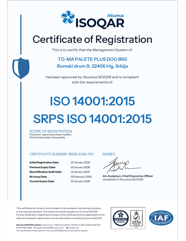 TO-MA PALETE PLUS DOO - SME Certificate